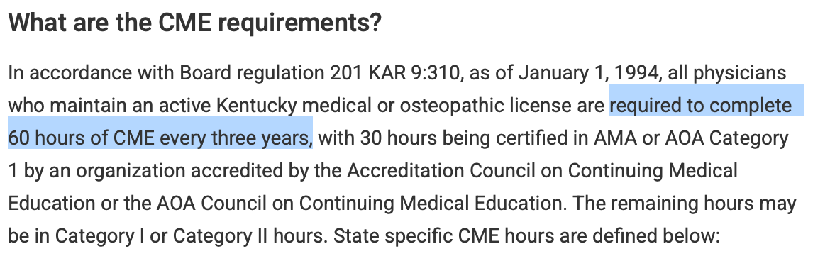 How much CME do I need? Since it's different for every single state, I'll just give a few examples. There are websites that aggregate the amount of CME you need, but it's always safer to go to the source.