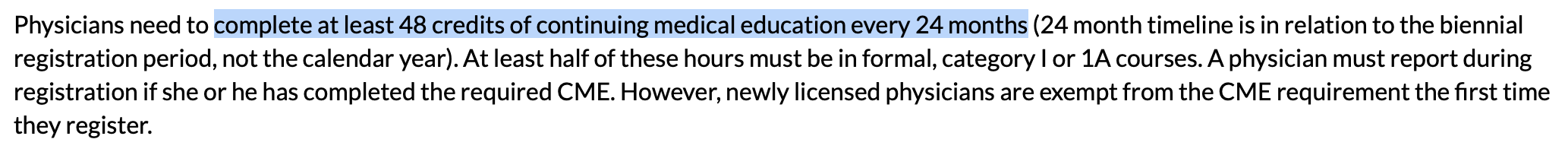 So in contrast, they require 48 credits every 2 years, of which half (24) must be Category 1 (see below). Of these 24 Category 1 hours: