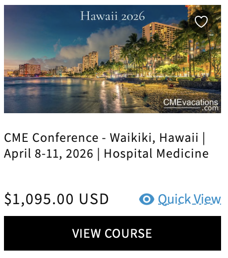There are also CME-specific conferences. These are slightly different because they aim to combine obtaining CME with vacation. Here's an example: