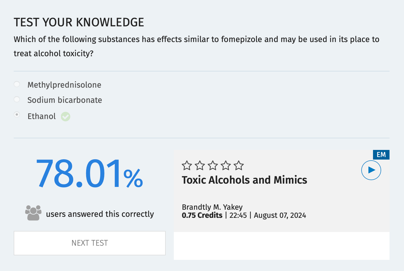 For instance, for emergency medicine, it tells you: "Approved by the American College of Emergency Physicians for a maximum of 30 hour(s) of ACEP Category I credit." (That's pretty good.)