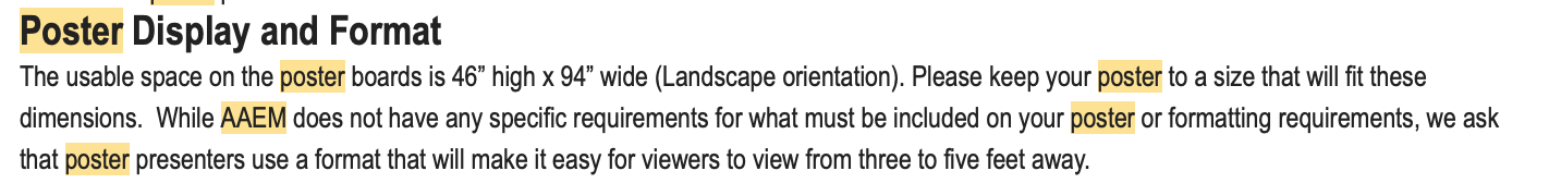 - Go to the conference website and/or acceptance email and read their instructions thoroughly. More often than not it'll answer a ton of your questions. Here is the snippet from the AAEM conference I attended in 2025: