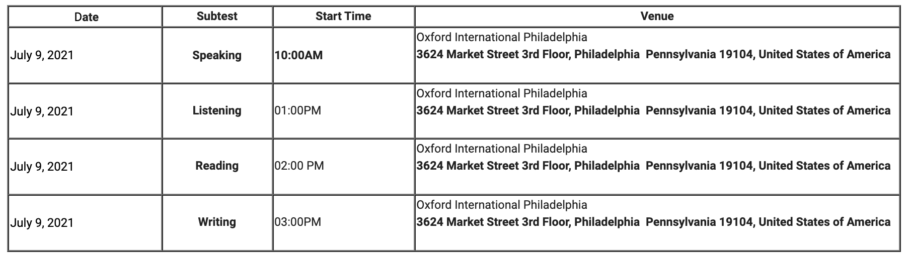 Of note, the schedule in the email is different than the one on the myOET dashboard. I called OET and the agent told me to go by the schedule in the email — which is great to know, because if I’d gone with the dashboard one, I would have missed my exam.