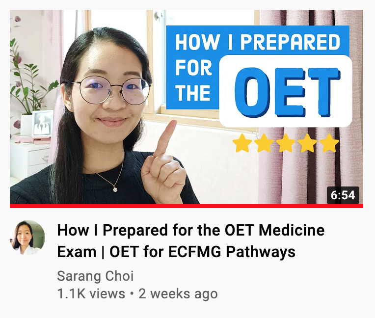I also watched a few YouTube videos from other people who’d taken OET for ECFMG purposes. My favorite one was this one by Sarang Choi, linked here.