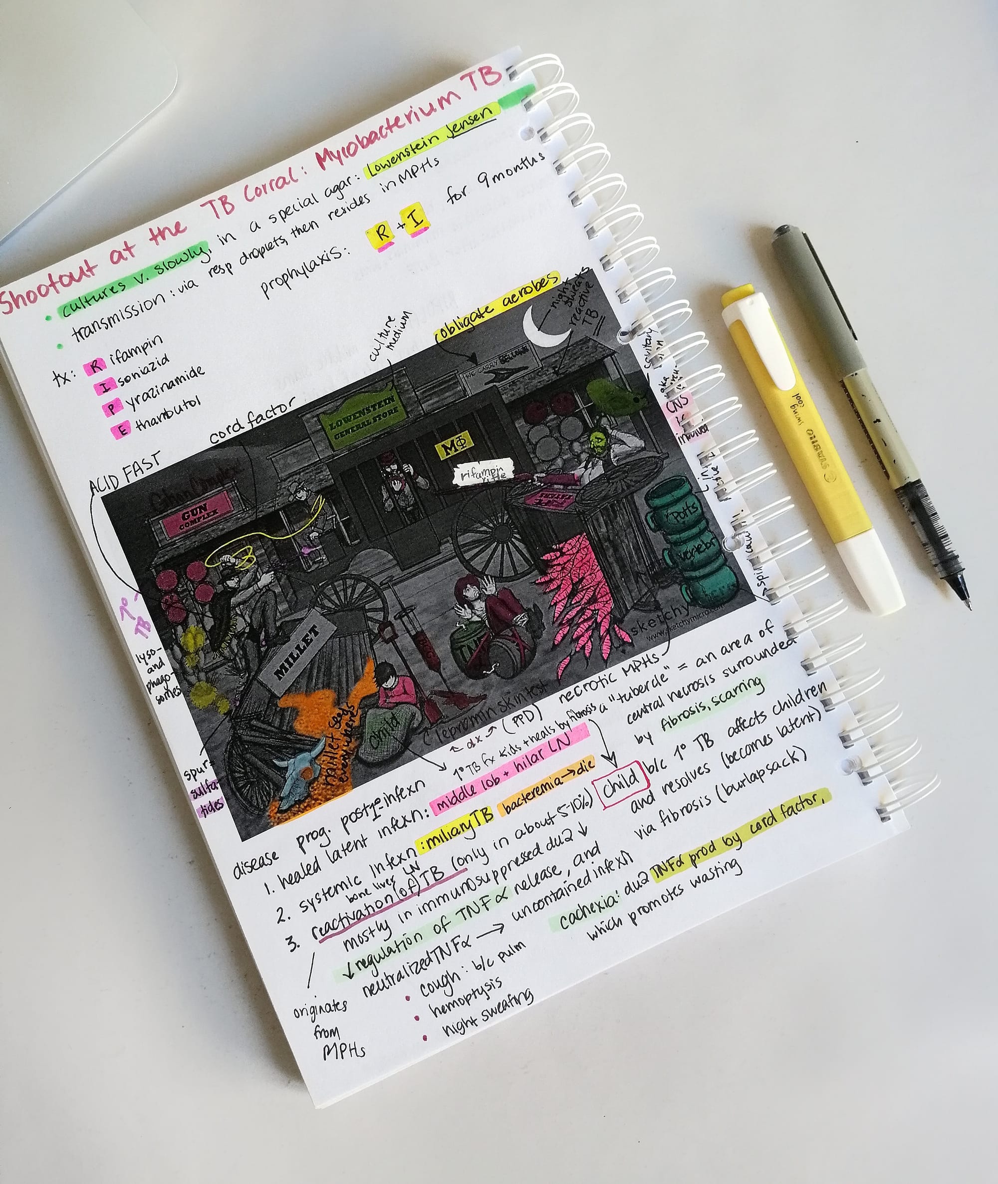 SO, for my uni micro class, we had a lot of details that weren’t in Sketchy. They weren’t high yield, but my European school isn’t too concerned about what’s high yield for the USMLE (surprising, right?). So what I did was go through the sketches and ADD IN my uni details. I doodled them in, highlighting them in a different color so I knew what was ‘uni’ and what was ‘Sketchy.’